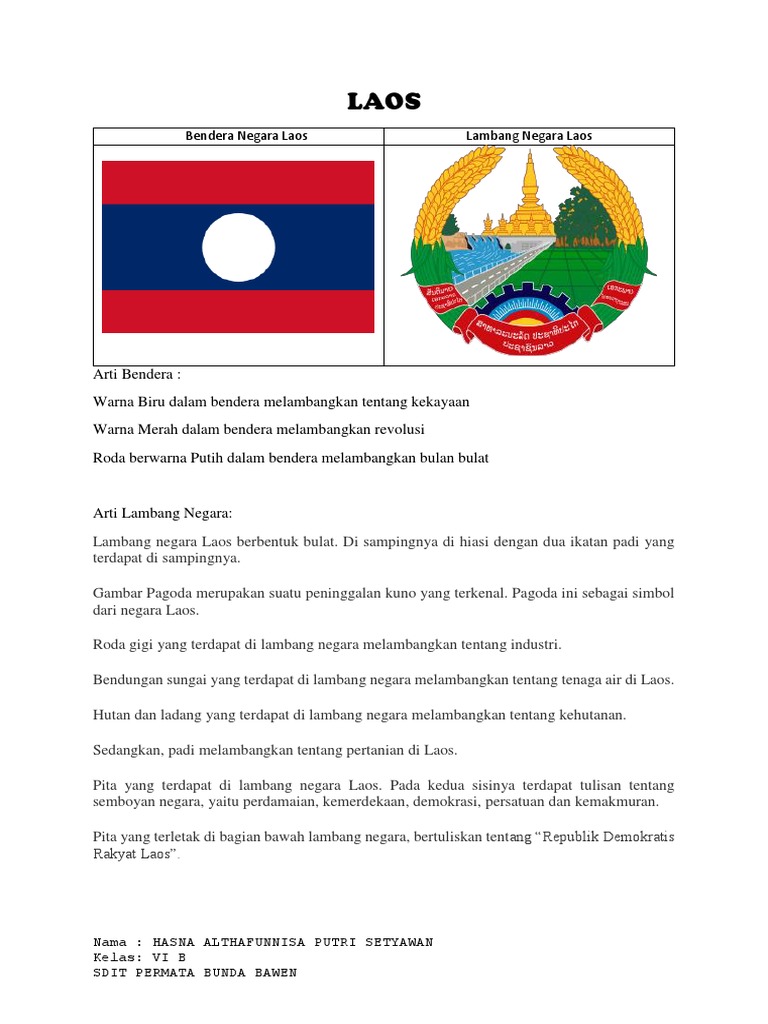 Arti bendera negara laos. Laos adalah negara di Asia Tenggara yang tidak memiliki wilayah laut laos memiliki bentuk bendera yang menampilkan motif berwarna merah biru dan juga merah yang tersusun secara horizontal. Di sampingnya di hiasi dengan dua ikatan padi yang terdapat di sampingnya. Arti Emoji Bendera.