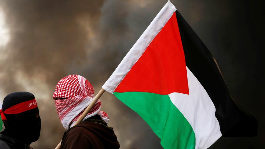 Status politiknya masih dalam perdebatan. Warna Putih Sementara itu warna putih merupakan bendera Dinasti Umayyah yang memimpin Damaskus selama 90 tahun. Bocah-bocah Palestina mengibarkan bendera nasional mereka saat berhadapan dengan pasukan Israel.
