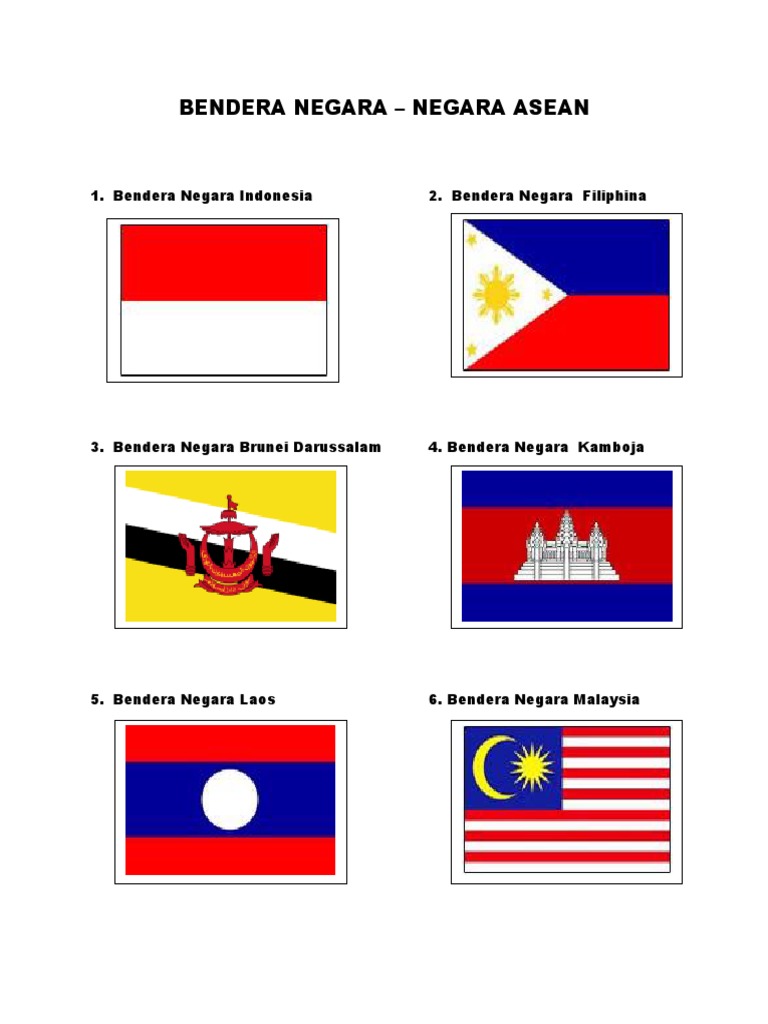 Gambarkan 5 bendera negara asean. Negara-negara ASEAN tersebut antara lain Indonesia Thailand Filipina Singapura serta Malaysia. Indonesia Republik Indonesia 2. Kelima perwakilan negara pendiri ASEAN resmi membentuk ASEAN dengan menandatangani Deklarasi ASEAN pada 8 Agustus 1967 di Bangkok.